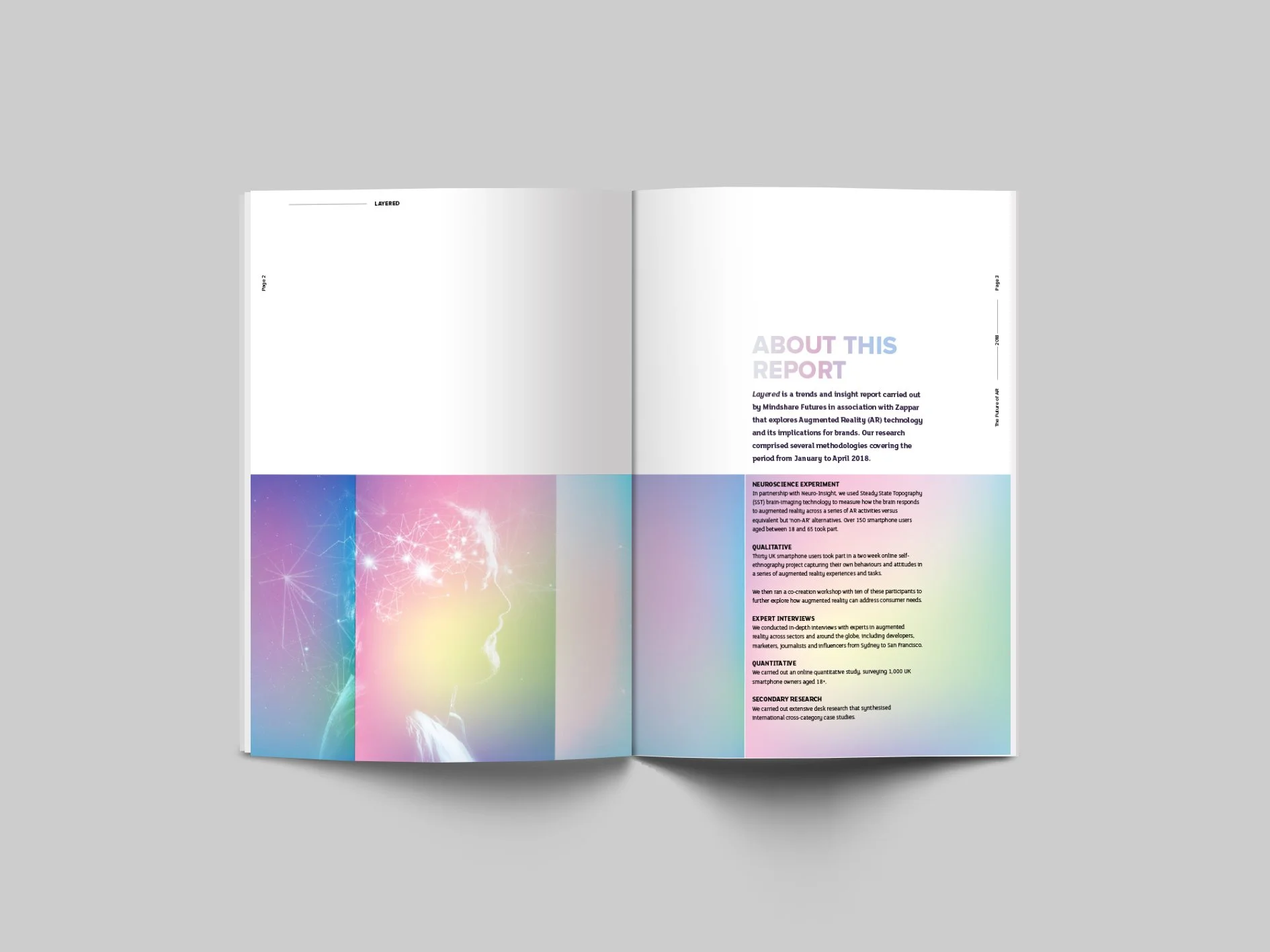 Working in partnership with Neuro-Insight and Zappar we put together a first-of-its-kind study into the consumer, neurological and brand impact of augmented reality. The project consisted of designing a sub-brand ID under the Mindshare umbrella and multiple applications such as a book, 3 variations for presentations, a short video and of course, five short AR applications via QR code scanning.